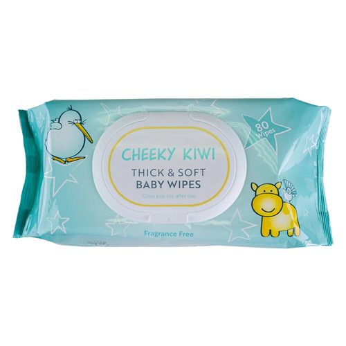 80 fragrance free baby wipes. Soft, thick and durable yet made with Aloe Vera to make them gentle on baby's skin. These wipes are alcohol, paraben, soap and mit free.