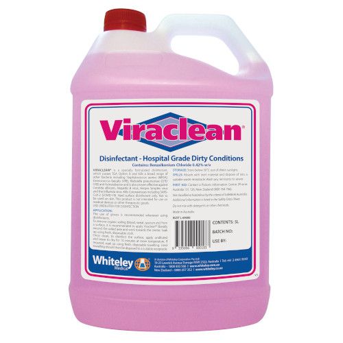 VIRACLEAN is a hospital-grade Disinfectant ready to use to clean any washable hard surface and cleans all bodily fluids. Viraclean is a major development in advanced cleaning and disinfecting technology from Whiteley Medical. It is the result of years of intensive research and development. A considerable investment in both time and money has been made in the interests of improving the safety and efficacy of hospital-grade disinfectants. VIRACLEAN can be used for both cleaning and disinfecting, demonstrating beneficial versatility for healthcare and associated environs.