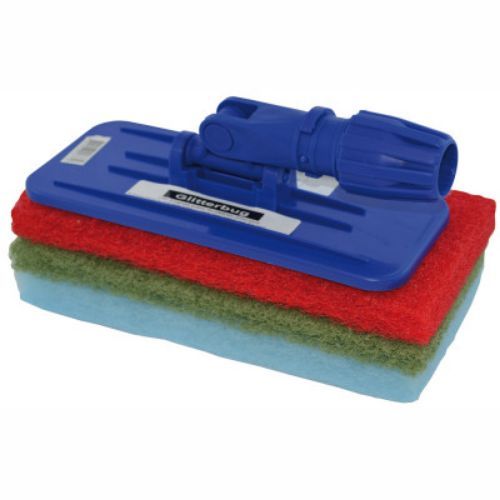 Comes with 3 Pads. With tough moulded-in pad gripping teeth rather than Velcro strips. Attaches to a pole or handle.