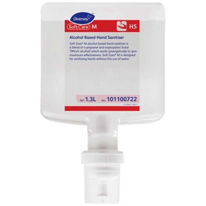 The Diversey Soft Care M Intellicare Alcohol Based Hand Sanitiser is designed for sanitising hands without needing to rinse with water as it leaves no harmful residue. It is formulated with a 70% alcohol blend of n-propanol and isopropanol. Being perfume free it will not taint food making it suitable for the food industry.