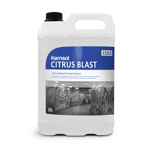 CITRUS BLAST is a high -strength multi -purpose cleaning agent for the removal of tar, rubber marks, grafitti and other heavy soiling from a variety of surfaces. Ideal for removal of sticky label residues. A citrus -based product that is more user friendly than a lot of solvents on the market place: to get rid of stubborn graffiti, tar, rubber and difficult to budge soiling. Available in 5L