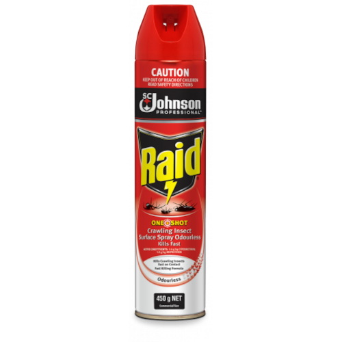 Raid One Shot Crawling Insect Killer 450GOdourless Kills Fast has been specially formulated for people who dont like the smell of regular insect sprays.