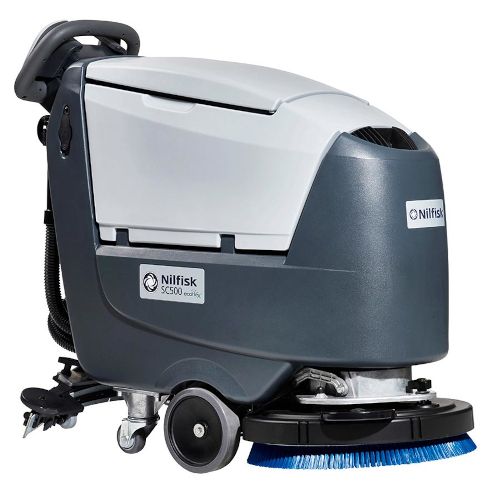 The Nilfisk SC500 walk-behind scrubber dryer is carefully designed to improve productivity and drive down your total cleaning costs. These significant benefits are achieved through more ease-of-use and a series of technical features enabling daytime cleaning and the most effective use of water and detergent. A reliable choice for cleaning companies, hospitals, schools, offices, supermarkets, shops, sports centers, restaurants, hotels, and production floors.