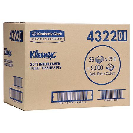 - KLEENEX 4322 I/LEAVED EXECUTIVE SOFT WHITE 2 PLY T/TISSUE 250S X 36
