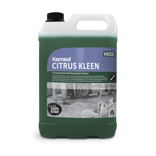 CITRUS KLEEN is a biodegradable cleaner/sanitiser/disinfectant. It contains di-limonene, a natural solvent derived from citrus fruit skins, which gives it powerful grease and oil cutting properties.