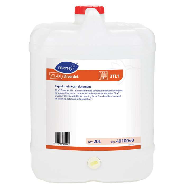 Clax Diverdet 3TL1 is a concentrated complete mainwash detergent, formulated for use in commercial and on premise laundries. Suitable for cleaning fabric from healthcare, as well as cleaning hotel and restaurant linen. Formulated with a unique blend of surfactants, alkalis, sequestrants and optical brighteners for maximum performance in all water hardness conditions. It contains a mild pleasant fragrance that will leave fabric smelling fresh. Ideally suited as a single shot mainwash detergent, however may be used in conjunction with an alkali booster for heavily soiled fabric.