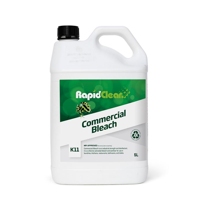 RapidClean Bleach 4% INDUSTRIAL STRENGTH BLEACH & DISINFECTANTis a chlorine activated bleach and sanitiser for use in laundries, kitchens, restaurants, bathrooms and toilets.
