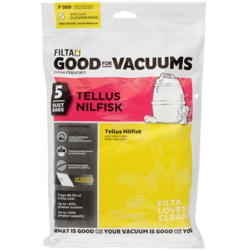 5 Bags Per Packet. Filta Code: F050. Fits the following Vacuums:Alto -Buddy 18, Nilfisk -CLOSED TYPE, BUDDY 18, GA70,GA71, GA90, GM70, GM80 TURBO,GM90, GS80, GS81, GS84, GS90,GSDNilfisk/Alto -Buddy 18. Tellus -GM80/GM90 GS80, GA70, GS90, GM80 Turbo GM90, G84