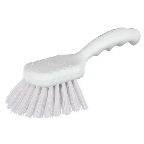 White Bristled Gong Brush. Can be used in hot water. White Handle. Agri-Quality approved for food industry.