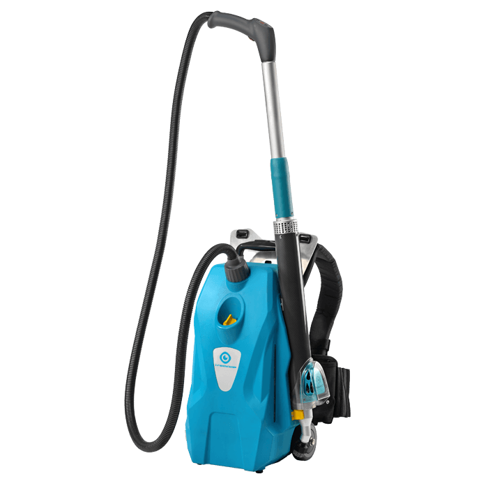 The i-remove gum removing machine has been designed for ease of portability with an inbuilt handle and transport wheels, as well as a comfort-fitted backpack option, ensuring operator safety even with prolonged use.