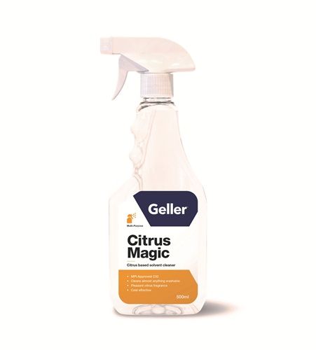 The Geller Citrus Magic Cleaner is a highly effective citrus based solvent with a clean and pleasant fragrance. Formulated with the powerful natural chemical d’limonene, it is great for use on a large number of cleaning tasks, including degreasing, dewaxing and adhesive removal. It has no overwhelming vapours and is MPI Approved C32.