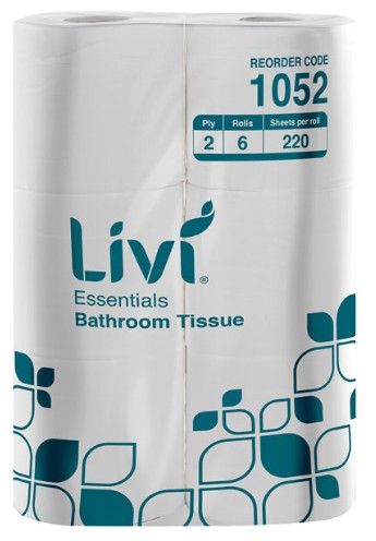 LIVI 1052 ESSENTIALS WHITE 2 PLY UNWRAPPED TOILET ROLLS 225S X 72 (12X6PK)