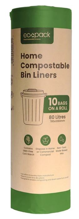 - ECOPACK 80L COMPOSTABLE BIN LINERS GREEN 780MM X 1060MM X 25MIC 10S